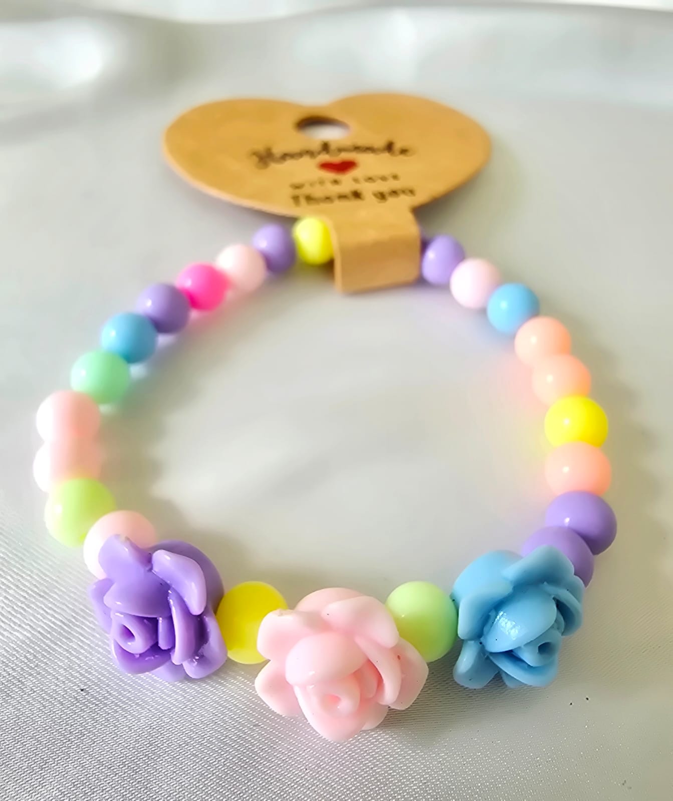 Flower charm bracelet, colourful acrylic beads in vibrant pastel hues for Teenagers